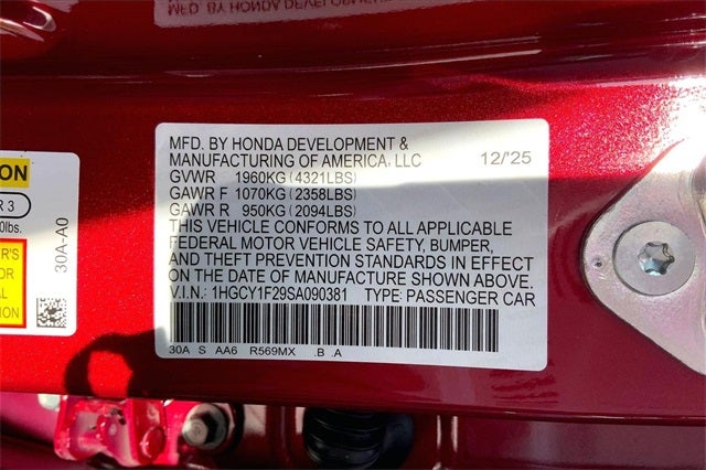 Radiant Red Metallic 2025 Honda Accord LX FWD CVT 1.5T I4 DOHC 16V Turbocharged VTEC
