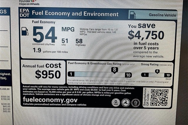 - Fuel Economy Est-Combined (MPG): 54
