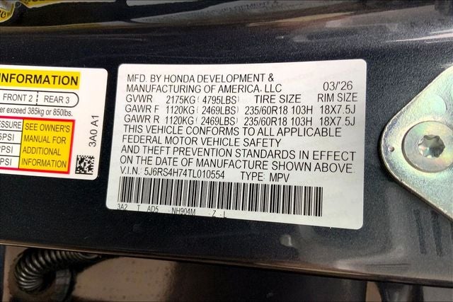 - Tires: 235/60R18 103H All-Season