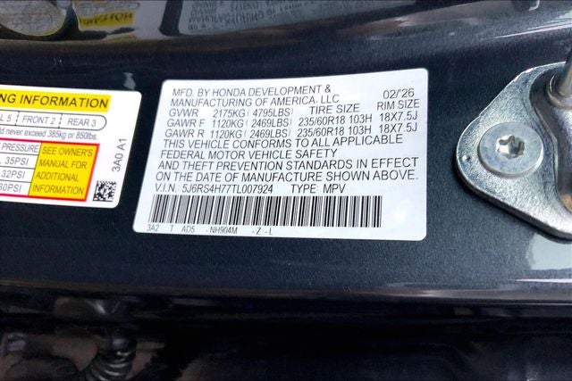 Meteorite Gray Metallic 2026 Honda CR-V EX-L AWD CVT 1.5L I4 DOHC 16V