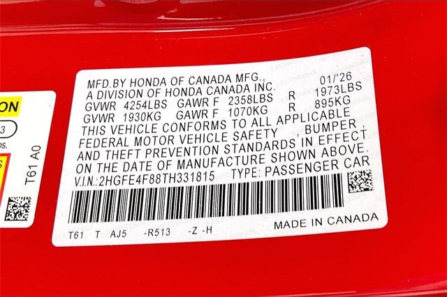 - Vehicle Name: Honda Civic Sedan Hybrid