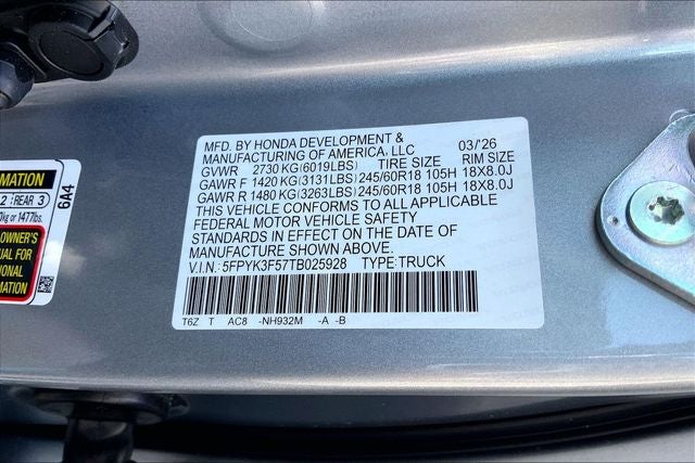 Solar Silver Metallic 2026 Honda Ridgeline RTL AWD 9-Speed Automatic 3.5L V6 SOHC i-VTEC 24V