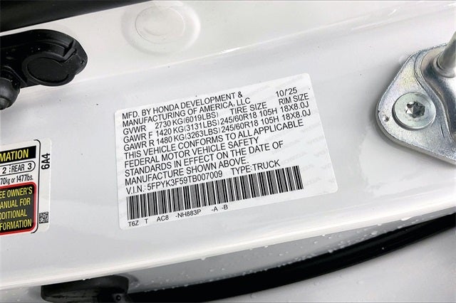 Platinum White Pearl 2026 Honda Ridgeline RTL AWD 9-Speed Automatic 3.5L V6 SOHC i-VTEC 24V