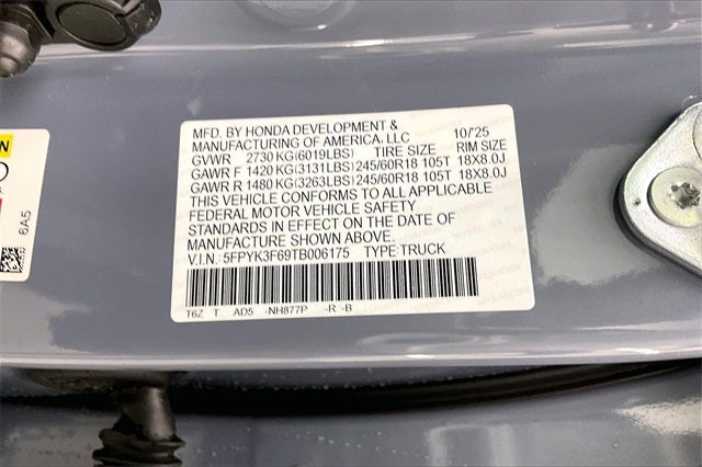 Sonic Gray Pearl 2026 Honda Ridgeline TrailSport AWD 9-Speed Automatic 3.5L V6 SOHC i-VTEC 24V