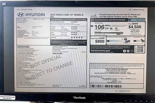 110/87 City/Highway MPG Price includes: $3000 - Hyundai HMF Dealer Choice : $3000 discount and 5.39% APR for 24 months. $44.05 per $1000 financed. Available to well qualified buyers who finance through Hyundai Motor Finance. H704. Exp. 02/02/2026