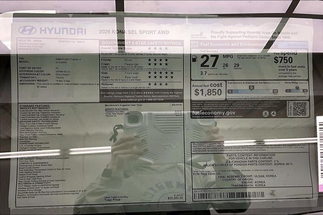 26/29 City/Highway MPG Price includes: $1000 - Hyundai HMF Dealer Choice : $1000 discount and 5.39% APR for 24 months. $44.05 per $1000 financed. Available to well qualified buyers who finance through Hyundai Motor Finance. H704. Exp. 04/30/2026 $750 - Sales Event Cash. Exp. 04/30/2026