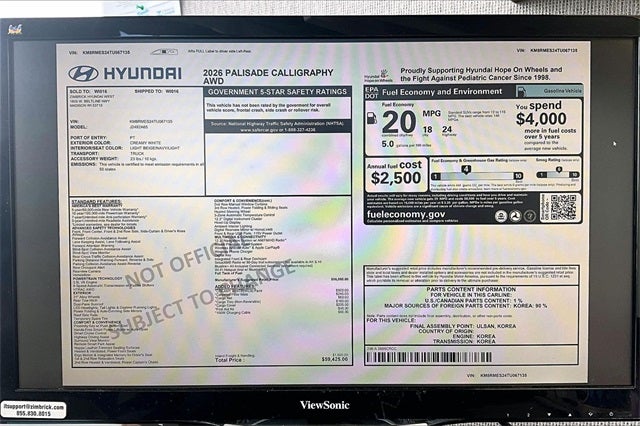- Fuel Economy Est-Combined (MPG): 20 (Est)