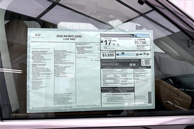 Black Obsidian 2026 INFINITI QX80 LUXE 4WD 9-Speed Automatic 3.5L V6 DOHC 24V
