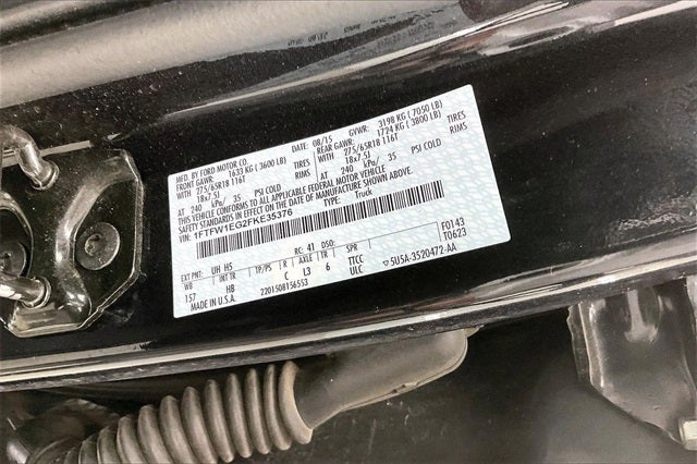 2015 Ford F-150 Lariat Tuxedo Black Metallic 3.5L V6 4WD 17/23 City/Highway MPG 4WD, 110V/400W Outlet, 4x4 FX4 Off-Road Decal, Auxiliary Transmission Oil Cooler, BLIS Blind Spot Information System, Chrome 3-Bar Style Grille w/Chrome Surround, Chrome Angular Step Bars, Chrome Door Handles w/Body-Color Bezel, Chrome Skull Caps on Exterior Mirrors, Class IV Trailer Hitch Receiver, Equipment Group 501A Mid, Front & Rear Off-Road Tuned Shock Absorbers, FX4 Off-Road Package, GVWR: 6,500 lbs Payload Package, Hill Descent Control, Lariat Chrome Appearance Package, LED Side-Mirror Spotlights, Power Glass Sideview Mirr w/Body-Color Skull Caps, Remote Start System, Reverse Sensing System, Single-Tip Chrome Exhaust, Trailer Tow Package, Universal Garage Door Opener, Upgraded Front Stabilizer Bar, Voice-Activated Navigation, Wheels: 18 Chrome-Like PVD, 18 Machined-Aluminum Wheels, 4-Wheel Disc Brakes, 7 Speakers, ABS brakes, Adjustable pedals, Air Conditioning, Alloy wheels, AM/FM radio: SiriusXM, Auto-dimming door mirrors, Auto-dimming Rear-View mirror, Automatic temperature control, Brake assist, Bumpers: chrome, CD player, Compass, Delay-off headlights, Driver door bin, Driver vanity mirror, Dual front impact airbags, Dual front side impact airbags, Electronic Stability Control, Extended Range 36 Gallon Fuel Tank, Exterior Parking Camera Rear, Front anti-roll bar, Front Center Armrest w/Storage, Front dual zone A/C, Front fog lights, Front License Plate Bracket, Front reading lights, Front wheel independent suspension, Fully automatic headlights, Heated door mirrors, Heated front seats, Illuminated entry, Integrated Trailer Brake Controller, Leather-Trimmed 40/20/40 Front Seat, Low tire pressure warning, Memory seat, Occupant sensing airbag, Outside temperature display, Overhead airbag, Overhead console, Panic alarm, Passenger door bin, Passenger vanity mirror, Pedal memory, Power door mirrors, Power driver seat, Power passenger seat, Power steering, Power windows, Radio data system, Radio: Single-CD w/SiriusXM Satellite, Rear reading lights, Rear seat center armrest, Rear step bumper, Rear window defroster, Remote keyless entry, Security system, Speed control, Speed-sensing steering, Split folding rear seat, Steering wheel mounted audio controls, SYNC with MyFord Touch, Tachometer, Tailgate Step w/Tailgate Lift Assist, Telescoping steering wheel, Tilt steering wheel, Traction control, Trip computer, Turn signal indicator mirrors, Variably intermittent wipers, Ventilated front seats, Voltmeter, Local Trade!, One Owner!, 4WD, 110V/400W Outlet, 4x4 FX4 Off-Road Decal, Auxiliary Transmission Oil Cooler, BLIS Blind Spot Information System, Chrome 3-Bar Style Grille w/Chrome Surround, Chrome Angular Step Bars, Chrome Door Handles w/Body-Color Bezel, Chrome Skull Caps on Exterior Mirrors, Class IV Trailer Hitch Receiver, Equipment Group 501A Mid, Front & Rear Off-Road Tuned Shock Absorbers, FX4 Off-Road Package, GVWR: 6,500 lbs Payload Package, Hill Descent Control, Lariat Chrome Appearance Package, LED Side-Mirror Spotlights, Power Glass Sideview Mirr w/Body-Color Skull Caps, Remote Start System, Reverse Sensing System, Single-Tip Chrome Exhaust, Trailer Tow Package, Universal Garage Door Opener, Upgraded Front Stabilizer Bar, Voice-Activated Navigation, Wheels: 18 Chrome-Like PVD.