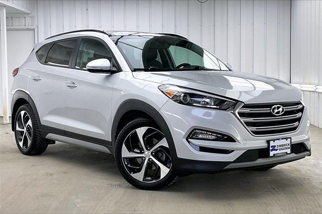 2017 Hyundai Tucson Limited Silver 1.6L I4 DGI Turbocharged DOHC 16V ULEV II 175hp AWD 24/28 City/Highway MPG AWD, 19 Alloy Wheels, 4-Wheel Disc Brakes, 8 Speakers, ABS brakes, Air Conditioning, Alloy wheels, AM/FM radio: SiriusXM, Apple CarPlay & Android Auto, Auto-dimming Rear-View mirror, Automatic Emergency Braking (AEB), Automatic temperature control, Axle Ratio: 3.579, Brake assist, Bumpers: body-color, Cargo Cover, Cargo Net, Cargo Package, Cargo Tray, Carpeted Floor Mats, Compass, Delay-off headlights, Driver door bin, Driver vanity mirror, Dual front impact airbags, Dual front side impact airbags, Electronic Stability Control, Emergency communication system: Blue Link, Exterior Parking Camera Rear, First Aid Kit, Four wheel independent suspension, Front and Rear LED Maplights, Front anti-roll bar, Front Bucket Seats, Front Center Armrest, Front dual zone A/C, Front fog lights, Front reading lights, Fully automatic headlights, Garage door transmitter: HomeLink, Heated door mirrors, Heated Front Bucket Seats w/Power Driver's Seat, Heated front seats, Heated Rear Seats, High-Intensity Discharge Headlights, Illuminated entry, Lane Departure Warning System (LDWS), Leather Seat Trim, Leather Shift Knob, Limited Ultimate Package 03, Low tire pressure warning, Occupant sensing airbag, Outside temperature display, Overhead airbag, Overhead console, Panic alarm, Panoramic Sunroof, Passenger door bin, Passenger vanity mirror, Power door mirrors, Power driver seat, Power Liftgate, Power passenger seat, Power steering, Power windows, Radio: Infinity AM/FM/HD Radio/MP3 Audio System, Rear anti-roll bar, Rear Bumper Applique, Rear Parking Sensors, Rear seat center armrest, Rear window defroster, Rear window wiper, Remote keyless entry, Roof rack: rails only, Security system, Speed control, Speed-sensing steering, Split folding rear seat, Spoiler, Steering wheel mounted audio controls, Supervision Cluster, Tachometer, Telescoping steering wheel, Tilt steering wheel, Traction control, Trip computer, Turn signal indicator mirrors, Variably intermittent wipers, Ventilated Front Bucket Seats, Wheel Locks, AWD.