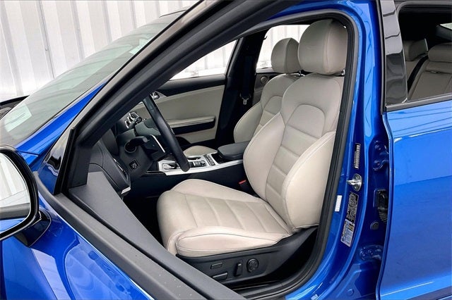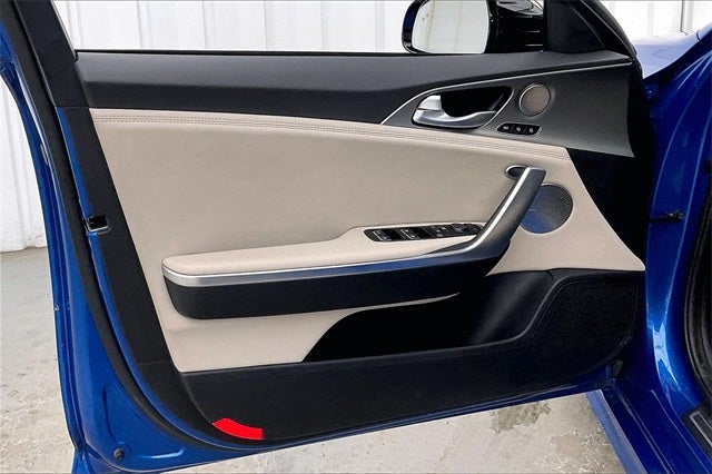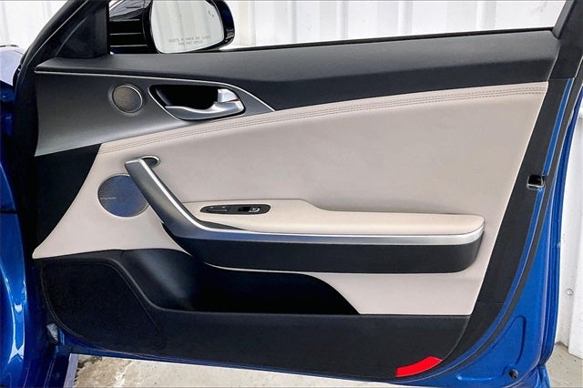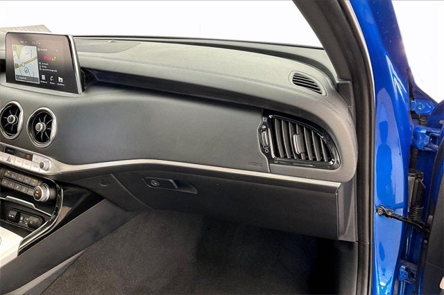 2018 Kia Stinger GT2 Micro Blue 3.3L V6 AWD 17/25 City/Highway MPG Zimbrick Certified Pre-Owned Certified, Gray Interior Color Pack, Gray Leather Seat Trim, Navigation System, 15 Speakers, 4-Wheel Disc Brakes, ABS brakes, Air Conditioning, Alloy wheels, AM/FM radio: SiriusXM, Anti-whiplash front head restraints, Apple CarPlay & Android Auto, Auto High-beam Headlights, Auto tilt-away steering wheel, Auto-dimming door mirrors, Auto-dimming Rear-View mirror, Automatic temperature control, Brake assist, Bumpers: body-color, Cargo Mat, Cargo Net, Cargo Tray, Compass, Delay-off headlights, Driver door bin, Driver vanity mirror, Dual front impact airbags, Dual front side impact airbags, Electronic Stability Control, Emergency communication system: UVO eServices, Exterior Parking Camera Rear, Four wheel independent suspension, Front anti-roll bar, Front Bucket Seats, Front Center Armrest, Front dual zone A/C, Front reading lights, Fully automatic headlights, Garage door transmitter: HomeLink, harman/kardon® Speakers, Heads-Up Display, Heated & Ventilated Front Bucket Seats, Heated door mirrors, Heated front seats, Heated steering wheel, Illuminated entry, Knee airbag, Low tire pressure warning, Memory seat, Nappa Leather Seat Trim, Occupant sensing airbag, Outside temperature display, Overhead airbag, Overhead console, Panic alarm, Passenger door bin, Passenger vanity mirror, Power door mirrors, Power driver seat, Power Liftgate, Power moonroof, Power passenger seat, Power steering, Power windows, Radio: AM/FM/MP3/HD/SiriusXM harmon/kardon Audio, Rain sensing wipers, Rear air conditioning, Rear anti-roll bar, Rear reading lights, Rear seat center armrest, Rear window defroster, Remote keyless entry, Security system, Speed control, Speed-sensing steering, Speed-Sensitive Wipers, Split folding rear seat, Spoiler, Sport steering wheel, Steering wheel memory, Steering wheel mounted audio controls, Tachometer, Telescoping steering wheel, Tilt steering wheel, Traction control, Trip computer, Turn signal indicator mirrors, Variably intermittent wipers, Ventilated front seats, Wheels: 19 x 8J Front & 19 x 8.5J Rear Alloy, Local Trade!, One Owner!, Gray Interior Color Pack, Gray Leather Seat Trim, Navigation System.