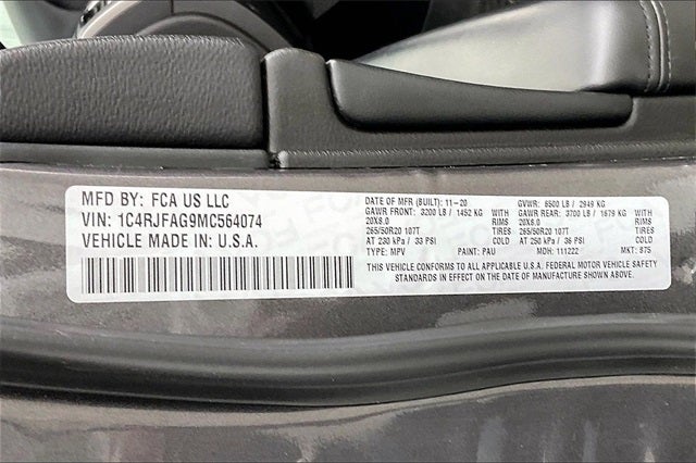 2021 Jeep Grand Cherokee Laredo X Granite Crystal Metallic Clearcoat 3.6L V6 24V VVT 4WD 18/25 City/Highway MPG 4WD, 3.45 Rear Axle Ratio, 4-Wheel Disc Brakes, 4G LTE Wi-Fi Hot Spot, 5-Year SiriusXM Traffic Service, 5-Year SiriusXM Travel Link Service, 506 Watt Amplifier, 6 Speakers, 8.4 Touchscreen Display, ABS brakes, Active Noise Control System, Air Conditioning, Alloy wheels, Altitude Appearance Package, Altitude Grille, AM/FM radio: SiriusXM, Anti-whiplash front head restraints, Apple CarPlay, Apple CarPlay/Android Auto, Automatic temperature control, Black Roof Molding, Black Suede Seats w/Black Stitching, Body Color Claddings, Body Color Fascia, Body Color Shark Fin Antenna, Brake assist, Bridgestone Brand Tires, Bumpers: body-color, Cloth Bucket Seats, Compass, Dark Day Light Opening Moldings, Dark Headlamp Bezel Finish, Dark Lens Taillamps, Delay-off headlights, Delete Laredo Badge, Driver door bin, Driver vanity mirror, Dual front impact airbags, Dual front side impact airbags, Electronic Stability Control, Four wheel independent suspension, Front Accent/Body Color Fascia, Front anti-roll bar, Front Bucket Seats, Front Center Armrest w/Storage, Front dual zone A/C, Front fog lights, Front reading lights, Fully automatic headlights, Gloss Black Jeep Badging, Gloss Black Rear Fascia Applique, Google Android Auto, GPS Antenna Input, GPS Navigation, HD Radio, Heated door mirrors, Heated Front Seats, Heated Steering Wheel, Illuminated entry, Instrument Cluster w/Off-Road Disp. Pages, Integrated Voice Command w/Bluetooth®, Knee airbag, Leather Shift Knob, Low tire pressure warning, Normal Duty Suspension, Occupant sensing airbag, Outside temperature display, Overhead airbag, Overhead console, Panic alarm, ParkView Rear Back-Up Camera, Passenger door bin, Passenger vanity mirror, Power door mirrors, Power driver seat, Power Liftgate, Power steering, Power Sunroof, Power windows, Premium Alpine Speaker System, Quick Order Package 2BM Laredo X (DISC), Radio data system, Radio: Uconnect 4 w/7 Display, Radio: Uconnect 4C Nav w/8.4 Display, Rear Accent/Body Color Fascia, Rear anti-roll bar, Rear Fascia Black Molded in Color Step Pad, Rear reading lights, Rear seat center armrest, Rear window defroster, Rear window wiper, Remote keyless entry, Remote Start System, Roof rack: rails only, Security Alarm, Single Exhaust w/Bright Tip, Speed control, Speed-sensing steering, Speed-Sensitive Wipers, Split folding rear seat, Spoiler, Steering Wheel Mounted Audio Controls, Steering wheel mounted audio controls, Sun & Sound Group, Tachometer, Telescoping steering wheel, Tilt steering wheel, Traction control, Trip computer, Universal Garage Door Opener, Variably intermittent wipers, Wheels: 18 x 8.0 Fine Silver Aluminum, Wheels: 20 x 8.0 Gloss Black Aluminum, Local Trade!, 4WD.