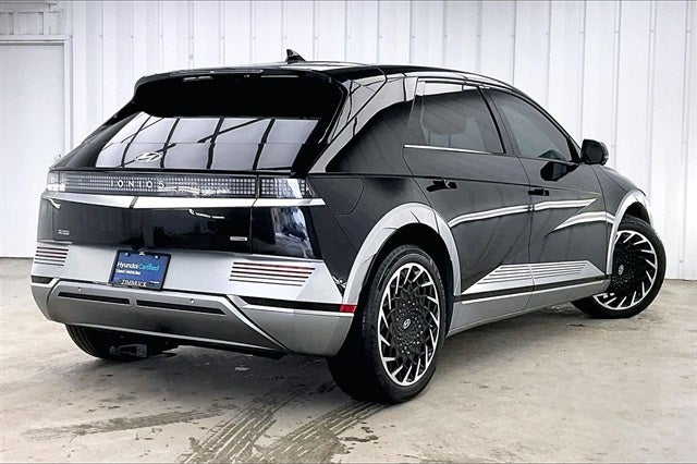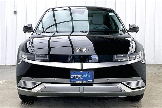 2023 Hyundai IONIQ 5 Limited Abyss Black Electric Motor AWD 113/90 City/Highway MPG Hyundai Certified Used Vehicles Certified, Navigation System, Option Group 01, 4-Wheel Disc Brakes, 4.706 Axle Ratio, 8 Speakers, ABS brakes, Air Conditioning, Alloy wheels, AM/FM radio: SiriusXM, Apple CarPlay & Android Auto, Auto High-beam Headlights, Auto-dimming Rear-View mirror, Automatic temperature control, Bodyside moldings, Brake assist, Bumpers: body-color, Carpeted Floor Mats, Delay-off headlights, Driver door bin, Driver vanity mirror, Dual front impact airbags, Dual front side impact airbags, Electronic Stability Control, Emergency communication system: Blue Link Connected Car Service (3-year complimentary subscription), Exterior Parking Camera Rear, First Aid Kit, Four wheel independent suspension, Front anti-roll bar, Front Bucket Seats, Front Center Armrest w/Storage, Front dual zone A/C, Front reading lights, Fully automatic headlights, Garage door transmitter: HomeLink, H-Tex Leatherette Seating Surfaces, Heads-Up Display, Heated & Ventilated Front Bucket Seats, Heated door mirrors, Heated front seats, Heated steering wheel, Illuminated entry, Leather steering wheel, Low tire pressure warning, Memory seat, Occupant sensing airbag, Outside temperature display, Overhead airbag, Overhead console, Panic alarm, Passenger door bin, Passenger vanity mirror, Power door mirrors, Power driver seat, Power Liftgate, Power passenger seat, Power steering, Power windows, Radio: AM/FM/SiriusXM/HD Display Audio System, Rain sensing wipers, Rear anti-roll bar, Rear reading lights, Rear seat center armrest, Rear window defroster, Remote keyless entry, Security system, Speed control, Speed-sensing steering, Split folding rear seat, Spoiler, Steering wheel mounted audio controls, Telescoping steering wheel, Tilt steering wheel, Tow Hitch, Traction control, Trip computer, Turn signal indicator mirrors, Up Seatback Cargo Mat, Variably intermittent wipers, Ventilated front seats, Wheels: 20 x 8.5J Aero Alloy, Local Trade!, One Owner!, Navigation System, Option Group 01.