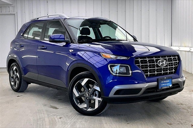 2024 Hyundai Venue SEL Intense Blue I4 FWD 29/33 City/Highway MPG Hyundai Certified Used Vehicles Certified, 4-Wheel Disc Brakes, 6 Speakers, 6.052 Axle Ratio, 6.5J x 17 Alloy Wheels, ABS brakes, Air Conditioning, Alloy wheels, AM/FM radio, Apple CarPlay & Android Auto, Auto High-beam Headlights, Automatic temperature control, Brake assist, Bumpers: body-color, Cargo Net, Cargo Tray, Carpeted Floor Mats, Cloth Seat Trim, Delay-off headlights, Driver door bin, Driver vanity mirror, Dual front impact airbags, Dual front side impact airbags, Electronic Stability Control, First Aid Kit, Front anti-roll bar, Front Bucket Seats, Front Center Armrest, Front reading lights, Front wheel independent suspension, Fully automatic headlights, Illuminated entry, Leather Shift Knob, Leather steering wheel, Low tire pressure warning, Occupant sensing airbag, Option Group 01, Outside temperature display, Overhead airbag, Overhead console, Panic alarm, Passenger door bin, Passenger vanity mirror, Power door mirrors, Power moonroof, Power steering, Power windows, Radio: AM/FM/HD Display Audio, Rear Seat Cup Holder, Rear window defroster, Rear window wiper, Remote keyless entry, Roof rack: rails only, Security system, Speed control, Speed-sensing steering, Split folding rear seat, Spoiler, Steering wheel mounted audio controls, Tachometer, Telescoping steering wheel, Tilt steering wheel, Traction control, Trip computer, Variably intermittent wipers, Wheel Locks, Local Trade!, One Owner!.