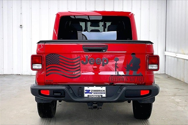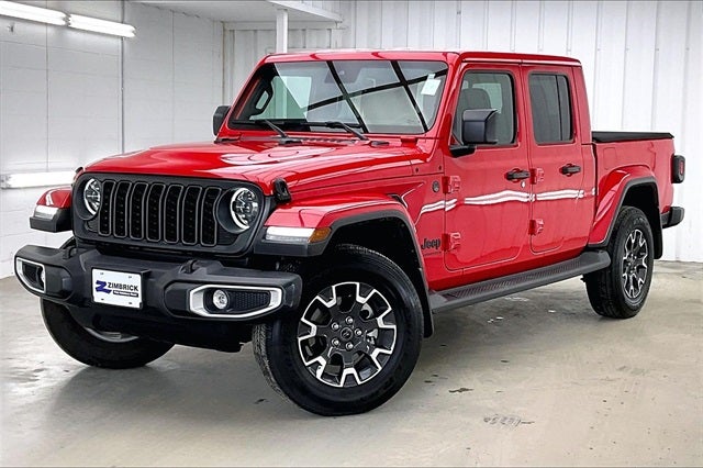 2024 Jeep Gladiator Sport Firecracker Red Clearcoat 3.6L V6 24V VVT 4WD 17/22 City/Highway MPG Zimbrick Certified Pre-Owned Certified, 110 MPH Vehicle Max Speed Calibration, 12.3 Touchscreen Display, 240 Amp Alternator, 3.73 Rear Axle Ratio, 4-Wheel Disc Brakes, 4G LTE Wi-Fi Hot Spot, 8 Speakers, ABS brakes, Advanced Brake Assist, Air Conditioning, Alexa Built-In, AM/FM radio: SiriusXM with 360L, Apple CarPlay, Apple CarPlay/Android Auto, Automatic Headlamps, Auxiliary Switches, Body Color 3-Piece Hard Top, Body Color Fender Flares (2-Piece), Brake assist, Class IV Receiver Hitch, Cloth Low-Back Bucket Seats, Compass, Connectivity - US/Canada, Convenience Group, Daytime Running Lamp System, Daytime Running Lamps LED Accents, Deep Tint Sunscreen Windows, Delay-off headlights, Disassociated Touchscreen Display, Driver door bin, Driver vanity mirror, Dual front impact airbags, Dual front side impact airbags, Electronic Stability Control, Emergency communication system: Jeep Connect, Enhanced Adaptive Cruise Control, Freedom Panel Storage Bag, Front 1-Touch Down Power Windows, Front anti-roll bar, Front Bucket Seats, Front Center Armrest w/Storage, Front fog lights, Front LED Fog Lamps, Front License Plate Bracket, Front reading lights, Full Speed Forward Collision Warning Plus, Google Android Auto, Heavy-Duty Engine Cooling, Integrated Center Stack Radio, Integrated roll-over protection, LED Headlamp & Fog Lamp Group, LED Premium Reflector Headlamps, Low tire pressure warning, Normal Duty Plus Suspension, Normal Duty Suspension, Occupant sensing airbag, Outside temperature display, Overhead airbag, ParkView Rear Back-Up Camera, Passenger door bin, Passenger vanity mirror, Power Heated Mirrors, Power steering, Power Tailgate Lock, Premium McKinley Trimmed Seats, Premium Package, Premium Wrapped Steering Wheel, Quick Order Package 24S Sport S, Radio data system, Radio: Uconnect 5 w/12.3 Display, Rear anti-roll bar, Rear reading lights, Rear Sliding Window, Rear Window Defroster, Remote Keyless Entry, Security Alarm, SiriusXM Radio Service, SiriusXM w/360L, Speed control, Speed Sensitive Power Locks, Split folding rear seat, Steering wheel mounted audio controls, Sun Visors w/Illuminated Vanity Mirrors, Tachometer, Telescoping steering wheel, Tilt steering wheel, Traction control, Trailer Hitch Zoom, Trailer Tow & Aux Switch Group, Trip computer, USB Host Flip, Variably intermittent wipers, Voltmeter, Wheels: 17 x 7.5 Black Steel Styled, Wheels: 17 x 7.5 Gray, Wheels: 18 x 7.5 Machined/Painted Gray (DISC), Local Trade!, One Owner!.