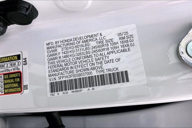 Platinum White Pearl 2025 Honda Ridgeline RTL AWD 3.5L V6 SOHC i-VTEC 24V 9-Speed Automatic