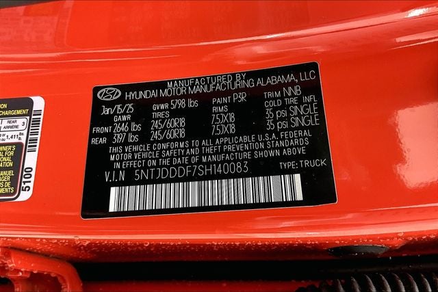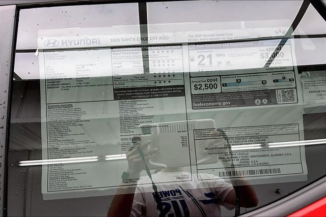 2025 Hyundai Santa Cruz XRT Canyon Red 2.5L I4 AWD 18/26 City/Highway MPG Hyundai Certified, 3.316 Axle Ratio, 4-Wheel Disc Brakes, 6 Speakers, ABS brakes, Air Conditioning, All Season Fitted Liners, Alloy wheels, AM/FM radio: SiriusXM, Apple CarPlay & Android Auto, Auto High-beam Headlights, Auto-leveling suspension, Automatic temperature control, Bed Cargo Net, Bodyside moldings, Brake assist, Bumpers: body-color, Cargo Net, Compass, Delay-off headlights, Driver door bin, Driver vanity mirror, Dual front impact airbags, Dual front side impact airbags, Electronic Stability Control, Emergency communication system: Bluelink+, Exterior Parking Camera Rear, First Aid Kit, Four wheel independent suspension, Front anti-roll bar, Front Bucket Seats, Front Center Armrest, Front dual zone A/C, Front reading lights, Fully automatic headlights, H-Tex Leatherette Seat Trim, Heated door mirrors, Heated Front Bucket Seats, Heated front seats, Illuminated entry, Leather Shift Knob, Leather steering wheel, Low tire pressure warning, Navigation System, Occupant sensing airbag, Option Group 01, Outside temperature display, Overhead airbag, Overhead console, Panic alarm, Passenger door bin, Passenger vanity mirror, Power door mirrors, Power driver seat, Power steering, Power windows, Radio data system, Radio: AM/FM/HD Audio System, Rear anti-roll bar, Rear reading lights, Rear seat center armrest, Rear side impact airbag, Rear step bumper, Rear window defroster, Remote keyless entry, Security system, Speed control, Speed-sensing steering, Split folding rear seat, Spoiler, Steering wheel mounted audio controls, Tachometer, Telescoping steering wheel, Tilt steering wheel, Traction control, Trip computer, Turn signal indicator mirrors, Variably intermittent wipers, Wheel Locks, Wheels: 18 x 7.5J Alloy w/XRT-Exclusive Design.