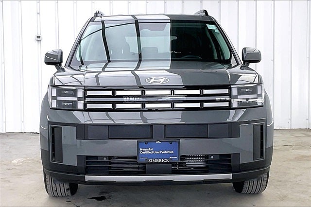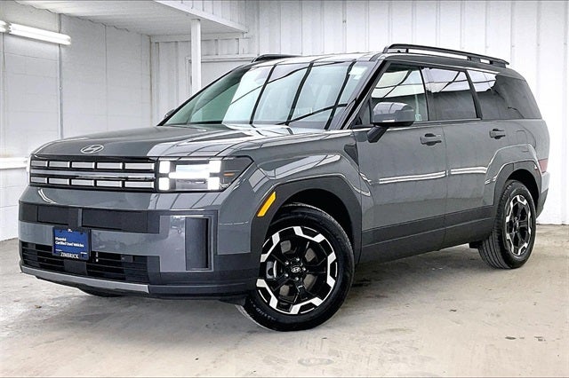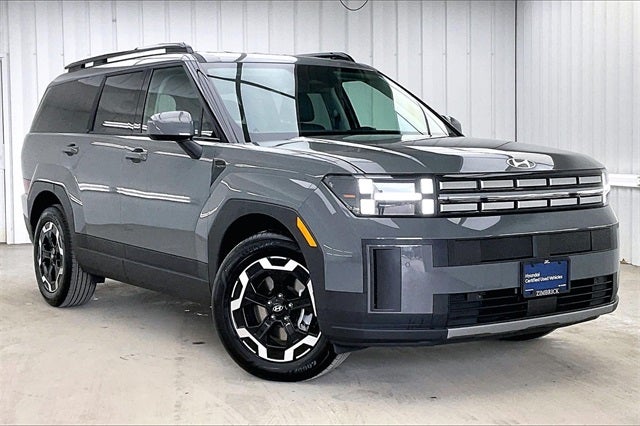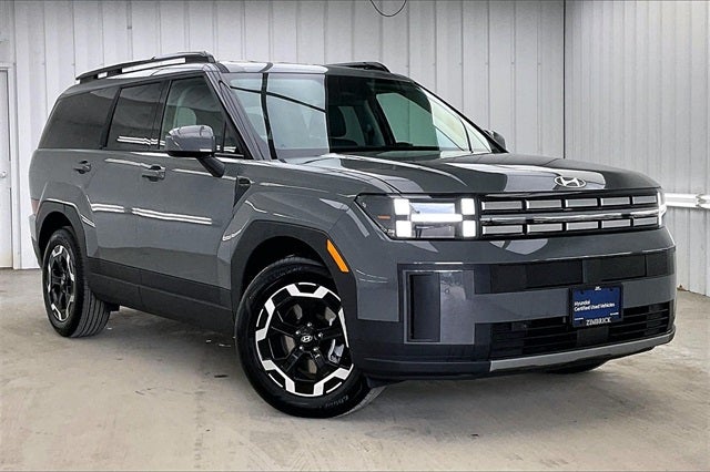 2025 Hyundai Santa Fe SEL Hampton Gray 2.5L I4 AWD 20/28 City/Highway MPG Hyundai Certified Used Vehicles Certified, AWD, Black Artificial Leather, Option Group 01, 18 x 7.5J Alloy Wheels, 3rd row seats: bench, 4-Wheel Disc Brakes, 6 Speakers, ABS brakes, Air Conditioning, Alloy wheels, AM/FM radio: SiriusXM, Apple CarPlay & Android Auto, Auto High-beam Headlights, Automatic temperature control, Brake assist, Bumpers: body-color, Cargo Cover, Cargo Net, Cargo Organizer, Cargo Tray, Carpeted Floor Mats, Delay-off headlights, Driver door bin, Driver vanity mirror, Dual front impact airbags, Dual front side impact airbags, Electronic Stability Control, Emergency communication system, Exterior Parking Camera Rear, First Aid Kit, Four wheel independent suspension, Front anti-roll bar, Front Bucket Seats, Front Center Armrest, Front dual zone A/C, Front reading lights, Fully automatic headlights, H-Tex Leatherette Seat Trim, Heated door mirrors, Heated Front Bucket Seats, Heated front seats, Illuminated entry, Knee airbag, Leather steering wheel, Low tire pressure warning, Occupant sensing airbag, Outside temperature display, Overhead airbag, Overhead console, Panic alarm, Passenger door bin, Passenger vanity mirror, Power door mirrors, Power driver seat, Power Liftgate, Power steering, Power windows, Radio: AM/FM/HD Display Audio, Rear anti-roll bar, Rear seat center armrest, Rear side impact airbag, Rear window defroster, Rear window wiper, Remote keyless entry, Security system, Speed control, Speed-sensing steering, Split folding rear seat, Spoiler, Steering wheel mounted audio controls, Tachometer, Telescoping steering wheel, Tilt steering wheel, Traction control, Trip computer, Turn signal indicator mirrors, Variably intermittent wipers, Local Trade!, One Owner!, AWD, Black Artificial Leather, Option Group 01.
